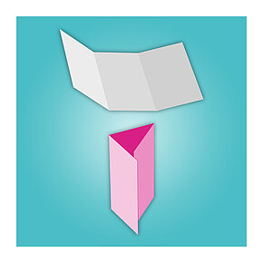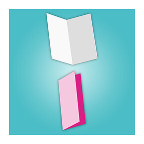 Wie Fensterläden umschließen die beiden äußeren Klappen den Mittelteil des Mailings, weshalb neben Altarfalz auch von Fensterfalz die Rede ist. Bei dieser parallelen Falzart werden die Außenseiten nach innen geklappt, ohne dass sie sich überlappen. Wenn durch zweifaches Falzen sechs Seiten entstehen, spricht man von einem offenen Altarfalz. Wird in der Mitte des Blattes ein weiterer Falz gesetzt, haben wir es mit der geschlossenen Variante zu tun und erhalten insgesamt acht Seiten. Fensterfalz-Flyer wirken elegant und verfügen über einen eingebauten Überraschungseffekt, der sich beim Öffnen der äußeren Klappen entfaltet.
