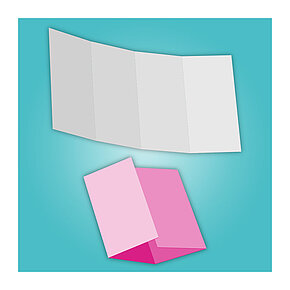 Eine Seite hin, eine Seite her – ein Leporello, wie Papiere mit Zickzackfalz auch genannt werden, wechselt bei jedem Falzen die Richtung. Die klassische Variante enthält durchweg symmetrische Knickkanten und in der Folge lauter Seiten im gleichen Format, die an eine Ziehharmonika erinnern. Was Länge und Größe betrifft, bieten Mailings mit parallelem Zickzackfalz einen großen Spielraum, weshalb sie gern als Übersichtskarten oder zur Präsentation vielfältiger Angebote eingesetzt werden.