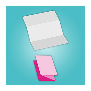 Nur ein einziger Bruch macht Mailings mit Einbruchfalz aus. Durch diesen einfachen Falz wird das Papier in vier Seiten unterteilt: Vorder- und Rückseite mit den beiden Innenseiten. Meist ist der Einbruchfalz genau in der Mitte eines Blattes zu finden. Möglich ist aber auch eine asymmetrische Ausführung, die zum Beispiel einen Blick auf die Innenseite zulässt. Typische Verwendungen für Blätter mit Einbruchfalz sind Einladungs- oder Glückwunschkarten.